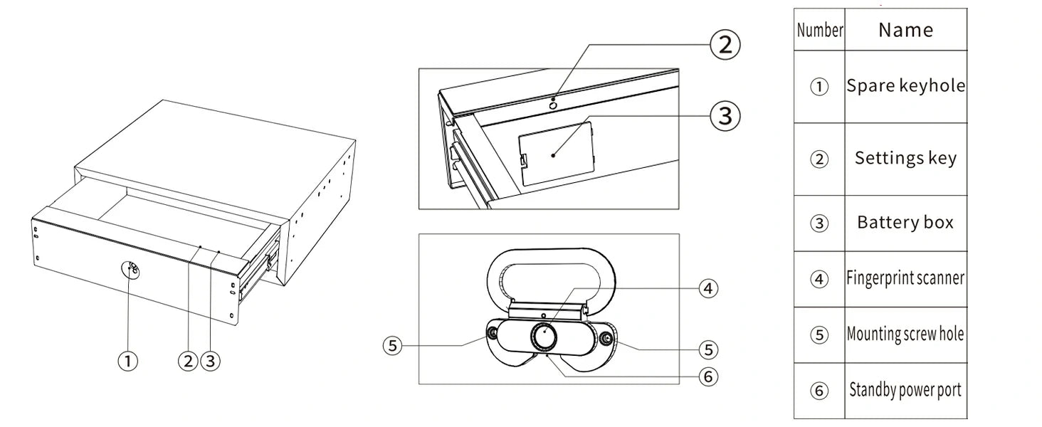 A concealed backup keyhole sits discreetly behind the lock core, invisible during daily use. Even if the battery runs low, you can power the safe with the included Type-C to USB emergency cable and access your jewelry without worry.